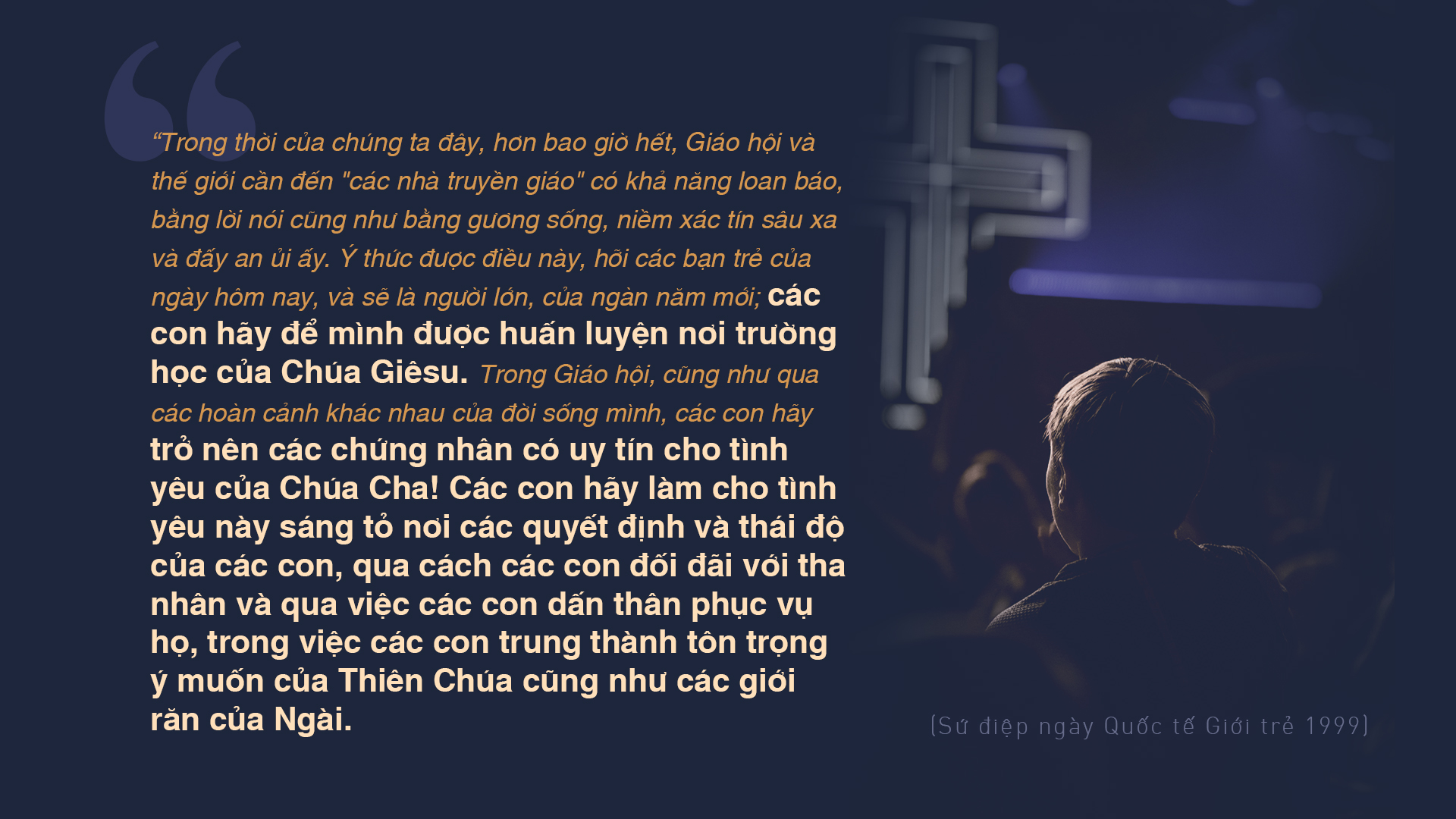 Cũng trong năm ấy, Đức Thánh Giáo hoàng Gioan Phaolo II gởi sứ điệp nhân ngày Quốc tế Giới trẻ lần thứ 14 (Chúa Nhật Lễ Lá 28/03/1999), đồng thời Ngài cũng khởi xướng năm Thánh 2000, đặc biệt với những chuẩn bị cho người trẻ toàn thế giới bước vào ngàn năm thứ ba. Trong bầu khí háo hức của toàn nhân loại trước thềm thiên niên kỷ mới, theo lời kể của Cha, các linh mục và nhiều vị đang đồng hành với người trẻ như Cha Gioan Nguyễn Văn Ty (Nguyên Giám tỉnh dòng Donbosco); các Cha Giuse Lê Quang Uy, Giuse Tiến Lộc dòng Chúa Cứu Thế; Cha Phêrô Nguyễn Văn Hiền (bấy giờ đang phụ trách Mục vụ Giới trẻ TGP Sài Gòn),… cũng đều đặc biệt quan tâm đến các hoạt động giới trẻ tại Việt Nam, cách riêng tại TP.HCM. Một ngày nọ, Cha nhận được cú điện thoại từ Cha Hiền, nhờ Cha phụ trách mục vụ giới trẻ trong một thời gian. Vị linh mục trẻ khi ấy, vừa mới chân ướt chân ráo rời Chủng viện về giáo xứ, không chắc mình có thể đảm đương sứ vụ này. Nhưng vì đức vâng lời và tinh thần luôn sẵn sàng trải nghiệm, Ngài đã nhận lời và bắt đầu hành trình mới từ ngày ấy.