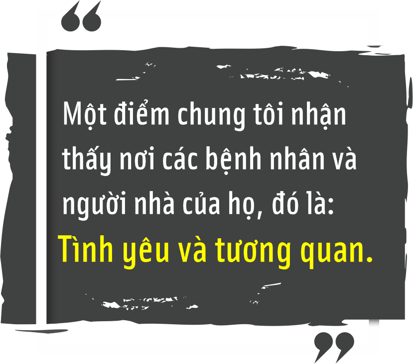 Vậy điều gì có thể nói là giá trị sống của các bệnh nhân ung thư giai đoạn cuối? Một điểm chung tôi nhận thấy nơi các bệnh nhân và người nhà của họ, đó là: Tình yêu và tương quan.