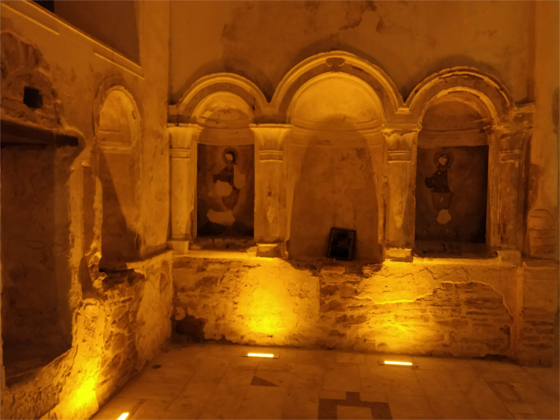 Ở điểm cao nhất của ngôi làng là nhà thờ thánh John the Baptist (Vaftizci Yahya Kilisesi) của những người theo đạo Chính thống. Công trình này có từ năm 1805 nhưng sau đó đã bị bỏ quên trong nhiều thập kỷ. Hiện tại, nhà thờ được dùng để tổ chức các buổi triển lãm từ thiện. Phía trước nhà thờ là một khoảng sân nhỏ với vài cửa hàng xung quanh. Chính giữa sân là hồ nước đặt tượng Theotokos Miriam, cách gọi tên Đức Mẹ theo Chính thống giáo. Khách du lịch có thể ném những đồng xu kèm theo lời nguyện ước của mình. Đây là một trong hai nhà thờ quan trọng của dân cư trong làng. Một nhà thờ khác là nhà thờ Thánh Demetrios (Aziz Dimitrios Kilisesi) nằm trên một cầu thang gần lối vào làng.