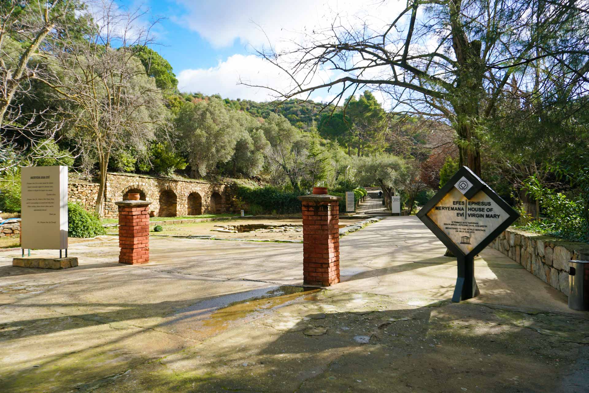 Từ Ephesus, bạn tiếp tục di chuyển về phía Nam, đi qua rất nhiều cánh đồng hoa màu, nông trại, nhà máy; sau đó lại leo qua nhiều quả đồi, thêm mấy con đèo ngoằn nghoèo. Ở đây, thỉnh thoảng bạn sẽ gặp một chiếc máy cày chạy bon bon, hoặc tự nhiên xuất hiện một chiếc xe máy chở đầy những sọt hoa quả băng ra từ trong con hẻm nhỏ nào đó. Cách Ephesus chừng 7 cây số, nhà Đức Mẹ nằm trên núi Koressos (tên khác là “Bülbüldağı”, nghĩa là “Núi chim họa mi” trong tiếng Thổ Nhĩ Kỳ).