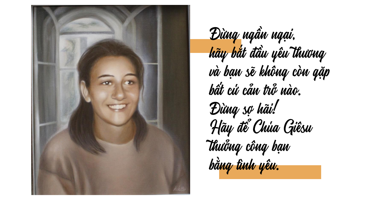 Tuổi mới lớn của chị cũng như bao bạn trẻ đồng trang lứa, cũng có nhiều thành công và thất bại, bị hiểu nhầm, bị bạn bè trêu chọc là “bà sơ” vì quá chăm lo việc nhà Chúa và cũng bị thất tình trong mối tình đầu tiên. Chị là một người như bao bạn trẻ khác: hạnh phúc và sôi nổi, thích âm nhạc, có một giọng hát rất hay, thích bơi lội, thích chơi tennis và leo núi.