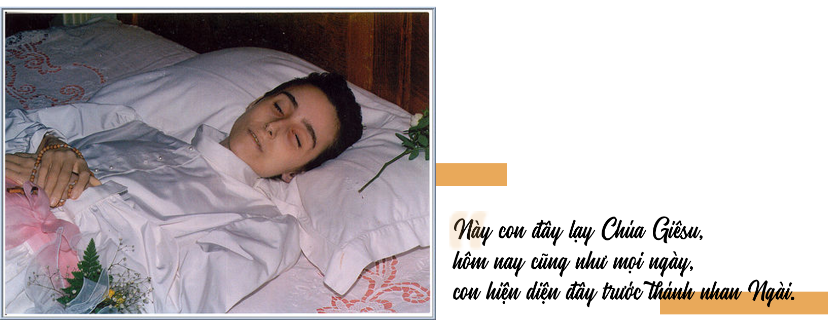 Trong năm cuối cùng, chị hoàn toàn nằm trên giường bệnh. Tuy vậy, chị vẫn theo dõi tin tức từ nhóm giới trẻ Youth of a United World (Y4UW) và mời gọi nhiều người đến tham dự đại hội diễn ra tại Roma. Chị còn tham gia vào các hội nghị và hoạt động khác thông qua tin nhắn, bưu thiếp và thư tín. Vào thời gian cuối cùng, chị đã từ chối thuốc giảm đau, chị nói: “Thuốc giảm đau làm mất đi cơ hội của tôi. Chỉ có một điều duy nhất tôi có thể làm ngay lúc này là dâng lên Chúa Giêsu nỗi đau của tôi, bởi vì tôi muốn chia sẻ nỗi đau của Chúa trên thập giá nhiều nhất tôi có thể”.