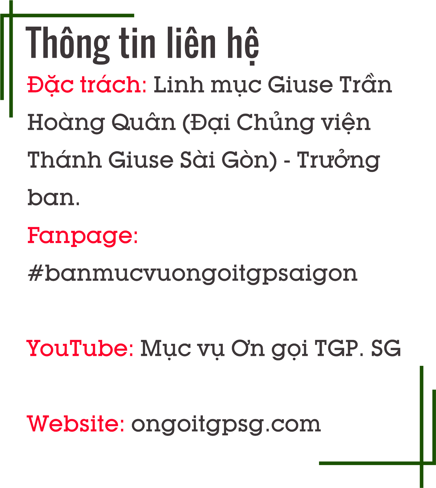 Ban Mục vụ Ơn gọi là một trong 16 ban mục vụ của Tổng Giáo phận Sài Gòn (TGPSG) do Đức Hồng y Gioan Baotixita Phạm Minh Mẫn thành lập năm 2005. Ban Mục vụ Ơn gọi được thành lập để đồng hành với các bạn trẻ trên bước đường khám phá và tìm hiểu ơn gọi. Nơi đây, bạn trẻ được mời gọi tham gia các sinh hoạt nhằm khám phá “tiếng gọi ban đầu” để trở nên người của Chúa trong ơn gọi linh mục Giáo phận.